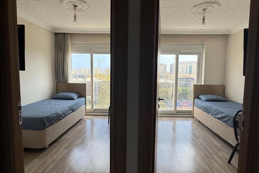 Konforlu ve huzurlu bir konaklama deneyimi sunan 2 kişilik öğrenci ve çalışanlar için mükemmel lokasyondaki apartımız, odalarımızda yatak baza başlık, çalışma masası sandalye, giyinme vestiyer, her odada televizyon ve klima bulunmakta olup, dairemizde ortak kullanım olarak buzdolabı, çamaşır makinesi, ocak, tüp, aspiratör, mutfak dolabı, banyo, ani su ısıtıcısı (şofben), duşa kabin, klozet bulunmaktadır.